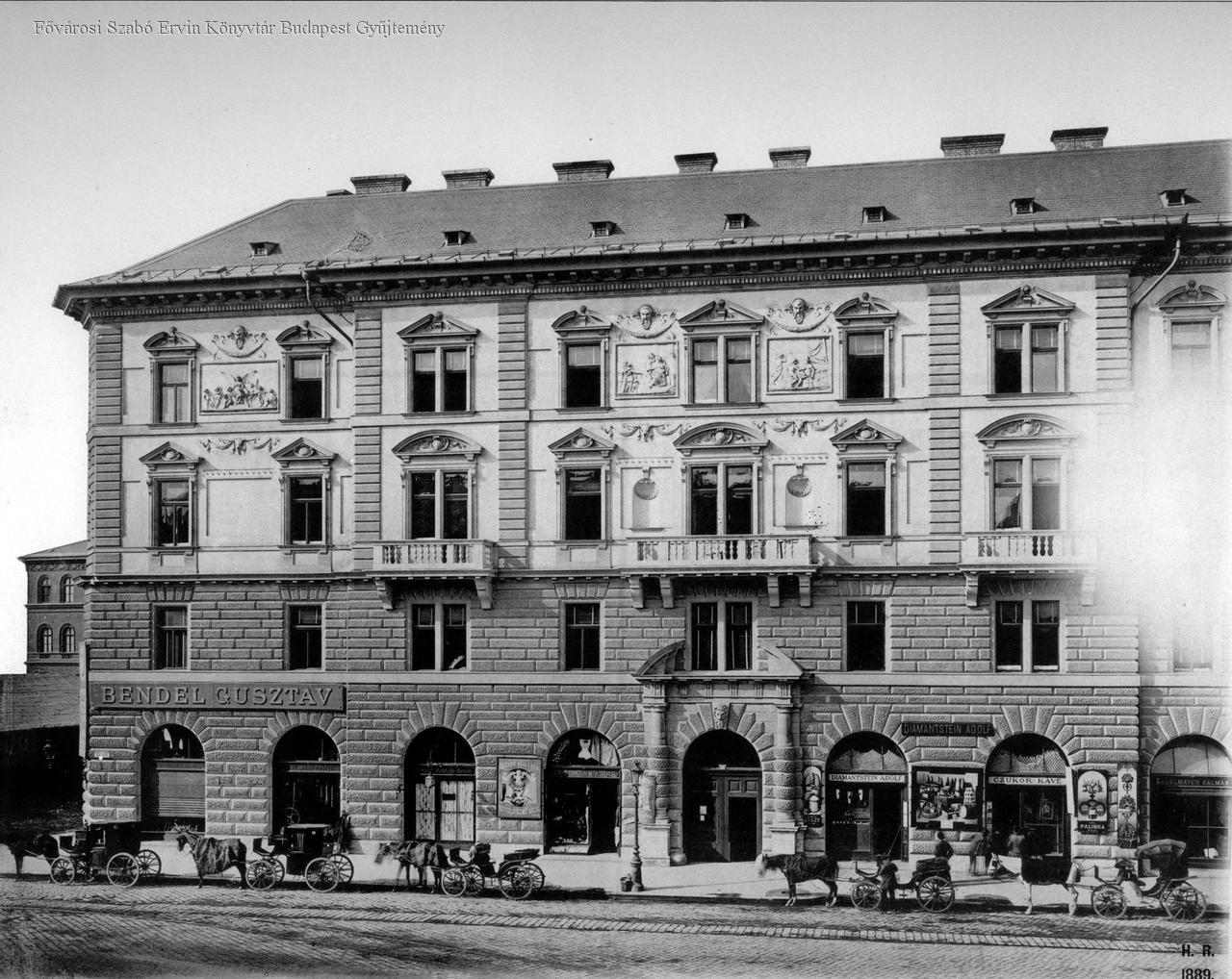 bank, historizmus, bérház, üzlet, kirakat, bérkocsi-közlekedés, épületkép, külső felvétel, 1889