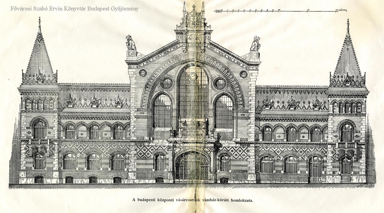 vásárcsarnok, építészeti terv, homlokzat, 1898