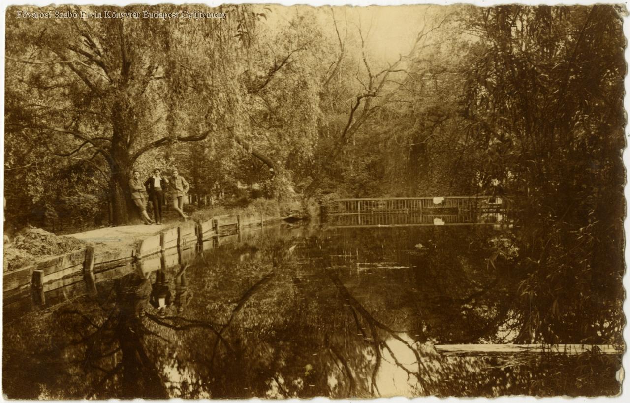 képes levelezőlap, külső felvétel, ember, kirándulás, kirándulóhely, fa, forrásvíz, forráshely, tó, 1916