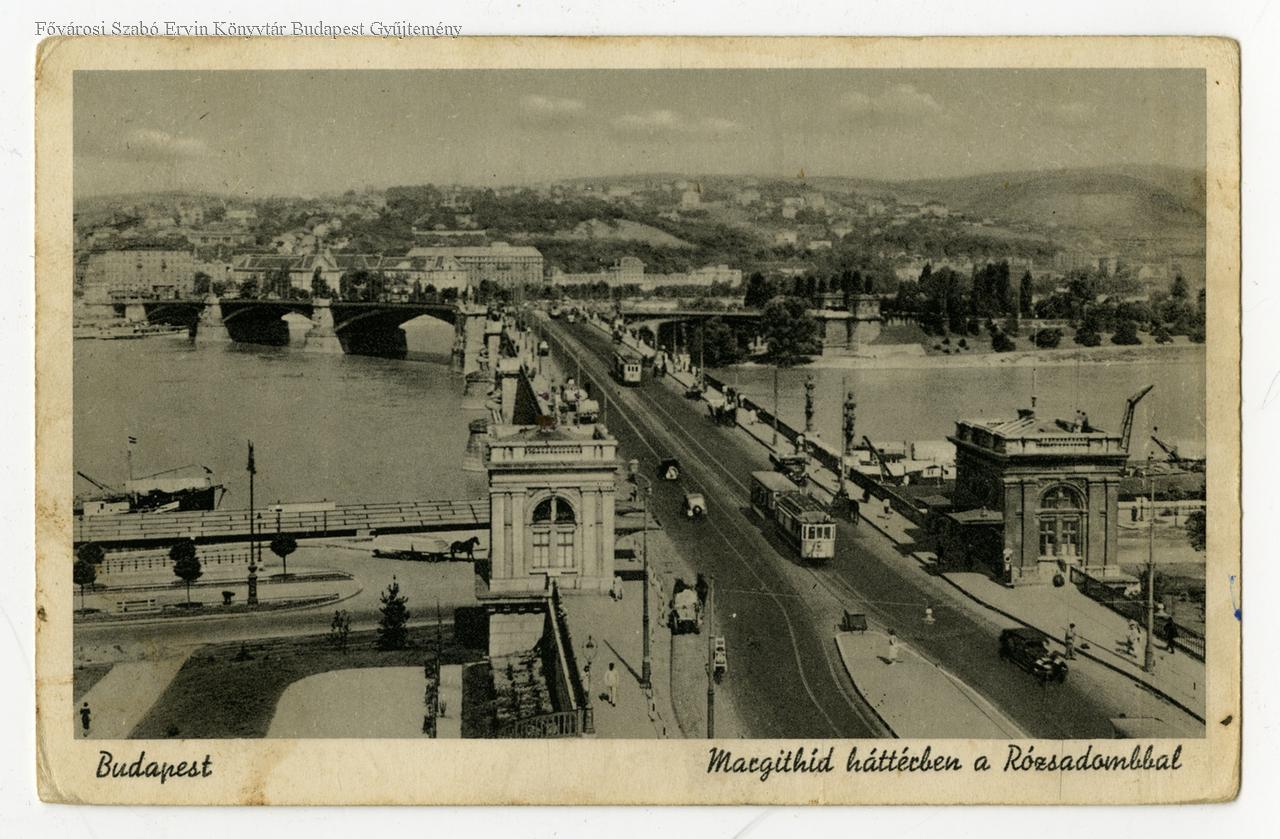 Budapest Margithíd háttérben a Rózsadombbal = Margerethenbrücke mit Anblick am Rosenhügel