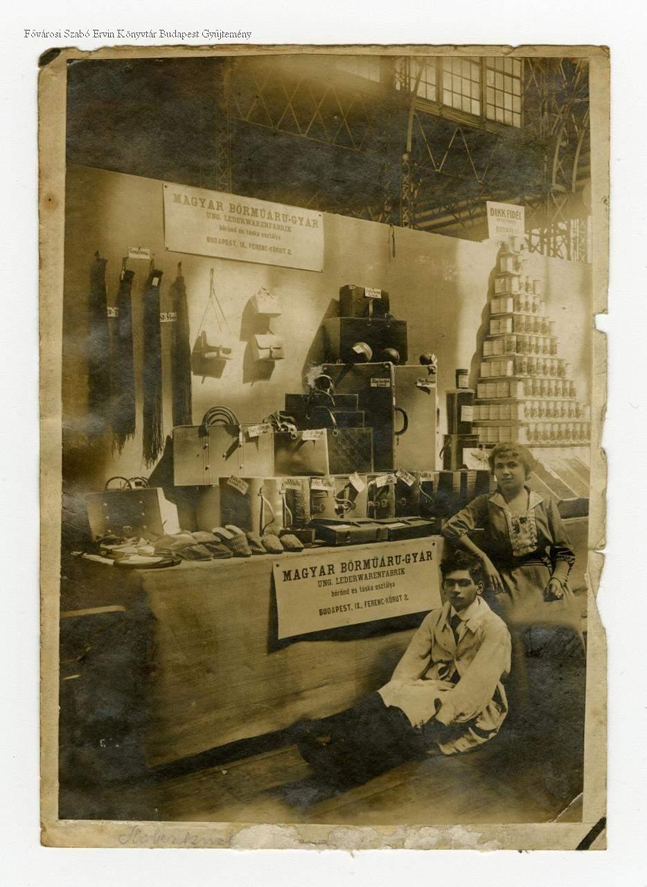 [A Magyar Bőrműáru-gyár ung. Lederwarenfabrik bőrönd és táska osztályának standja az Ipari Kiállításon]